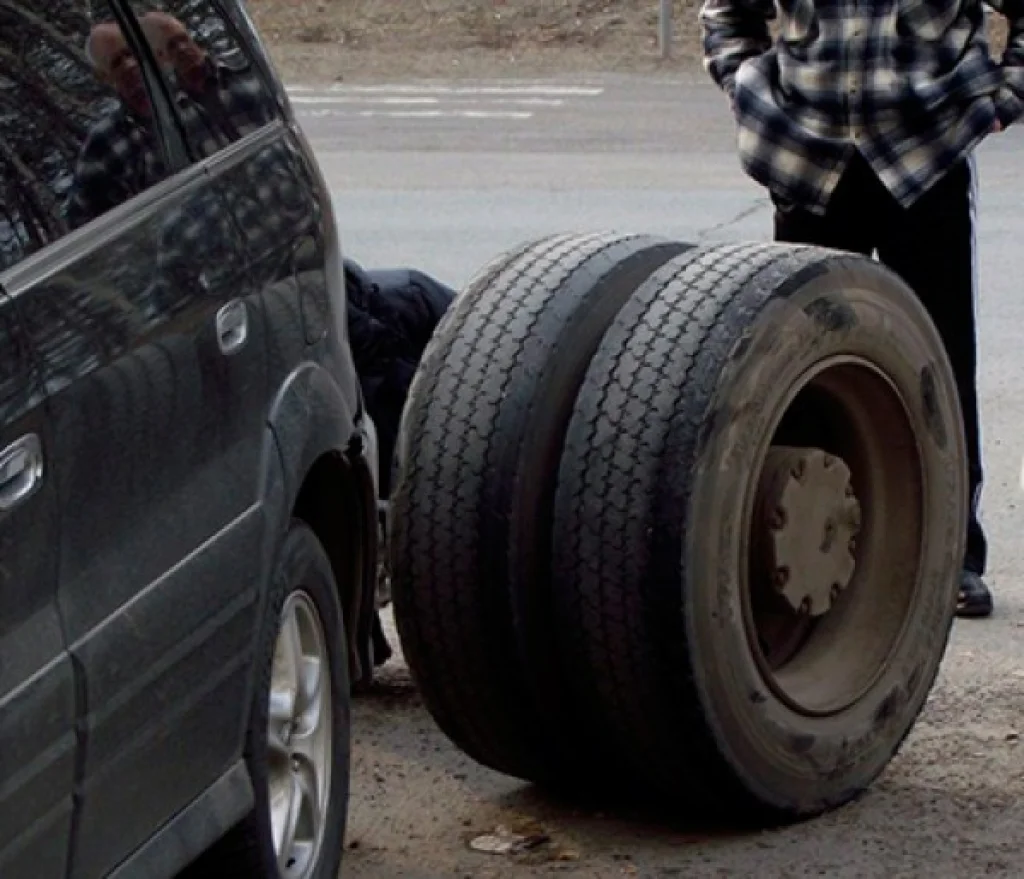 Отвалившееся у грузовика колесо врезалось в легковушку