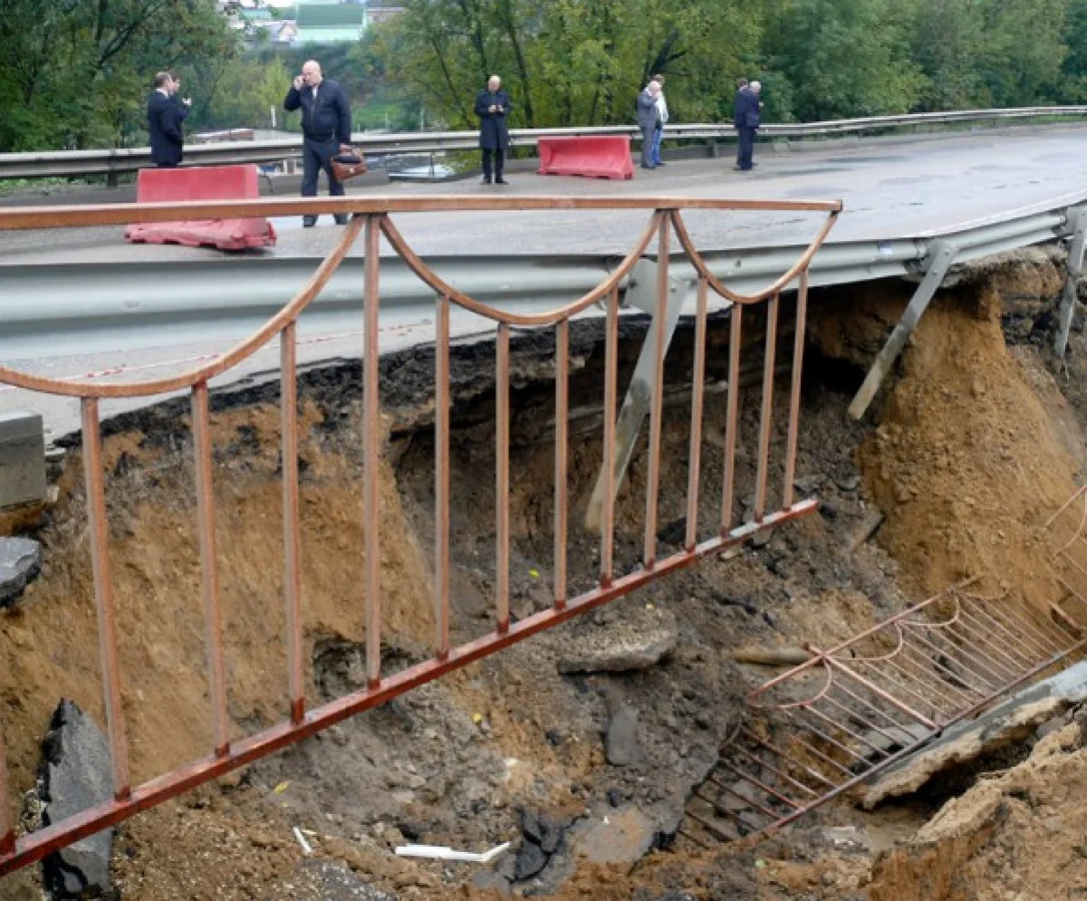 - Образовалась промоина… Банальная промоина, банальнее не придумаешь, - считает он. - Трубы внутри проходили под дорогой, какие-то сточные воды туда попадали по канализации связистов. Никто, конечно, об этих трубах и не знал, их там, может, 40-50 лет назад заложили, эти трубы прохудились, размыло.. Там есть обычный трубопереезд, труба как лежала, так и лежит, вода по ней как протекала, так и протекает, она никуда не делась, она на месте осталась. Там просто элементарная промоина образовалась, которых у нас сотни бывает по всей области весной или после обильных дождей.