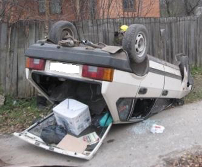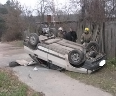 Днем в четверг, 24 октября, ВАЗ 2109 перевернулся в Калуге.