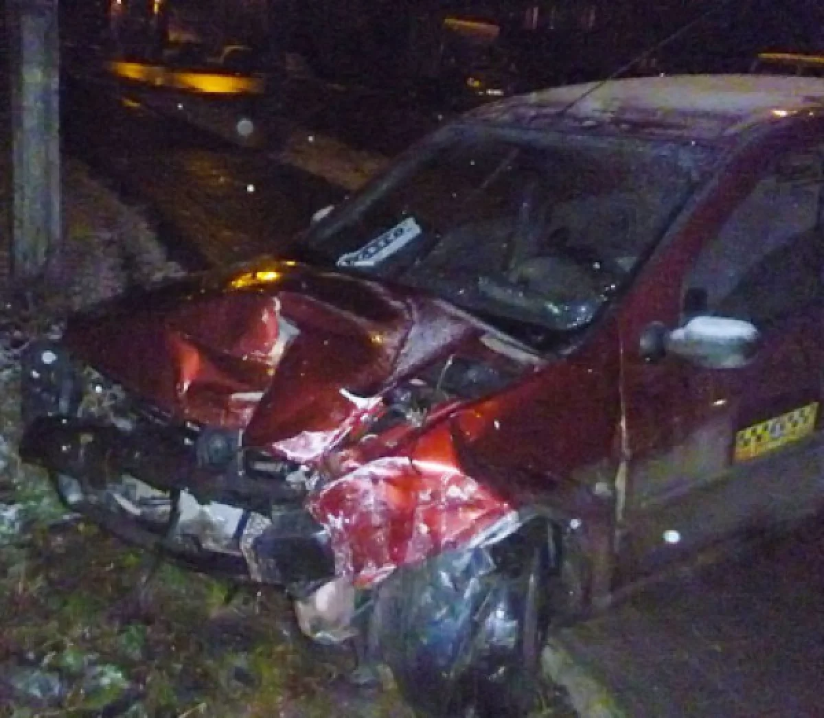 Вечером во вторник, 26 ноября, в Калуге во время снегопада автомобиль «Рено» одной из служб такси врезался в забор на улице Никитина.