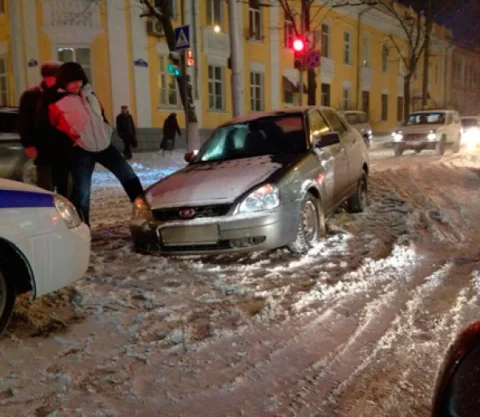 Утром в четверг, 16 января, в центре Калуги «Лада» колесом провалилась в люк. О происшествии в Twitter сообщил пользователь «Калужский троллейбус».