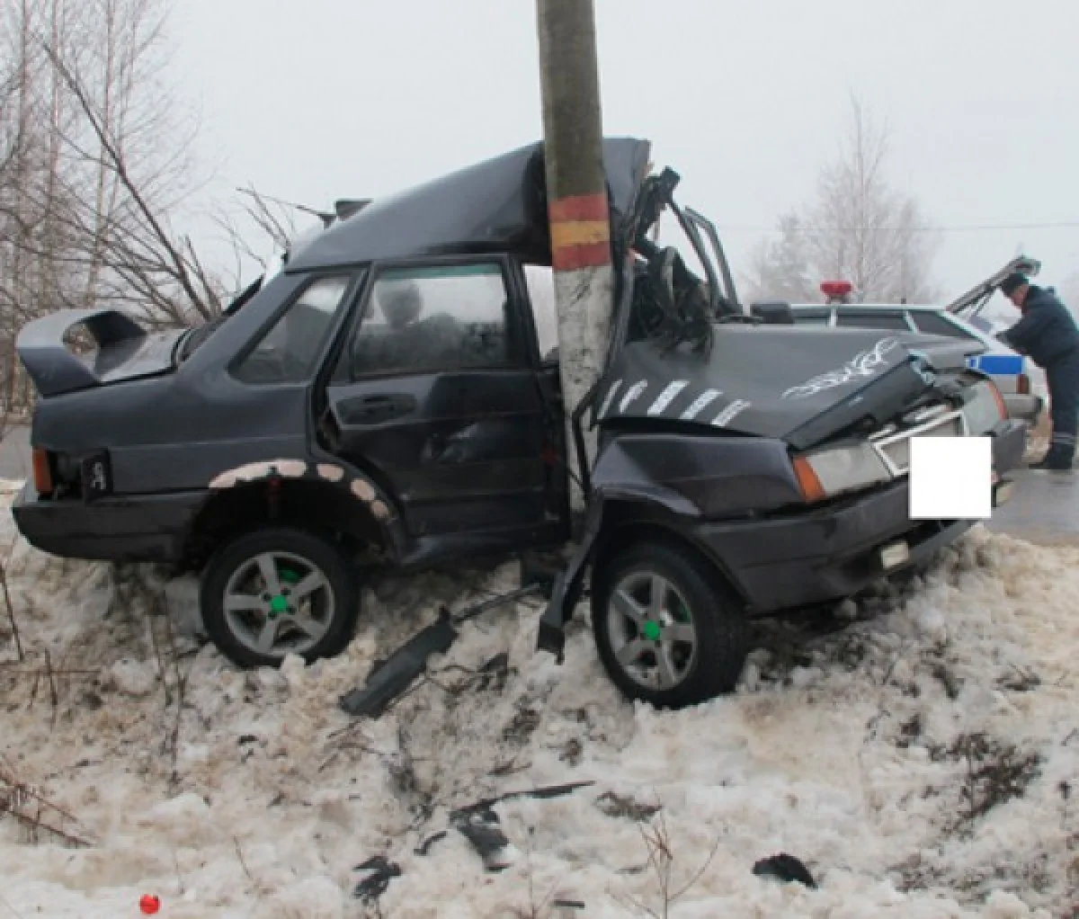 Автомобиль ВАЗ 21099 врезался в столб утром в четверг, 13 февраля. Авария произошла в Людиново недалеко от железнодорожной станции около 9 утра.