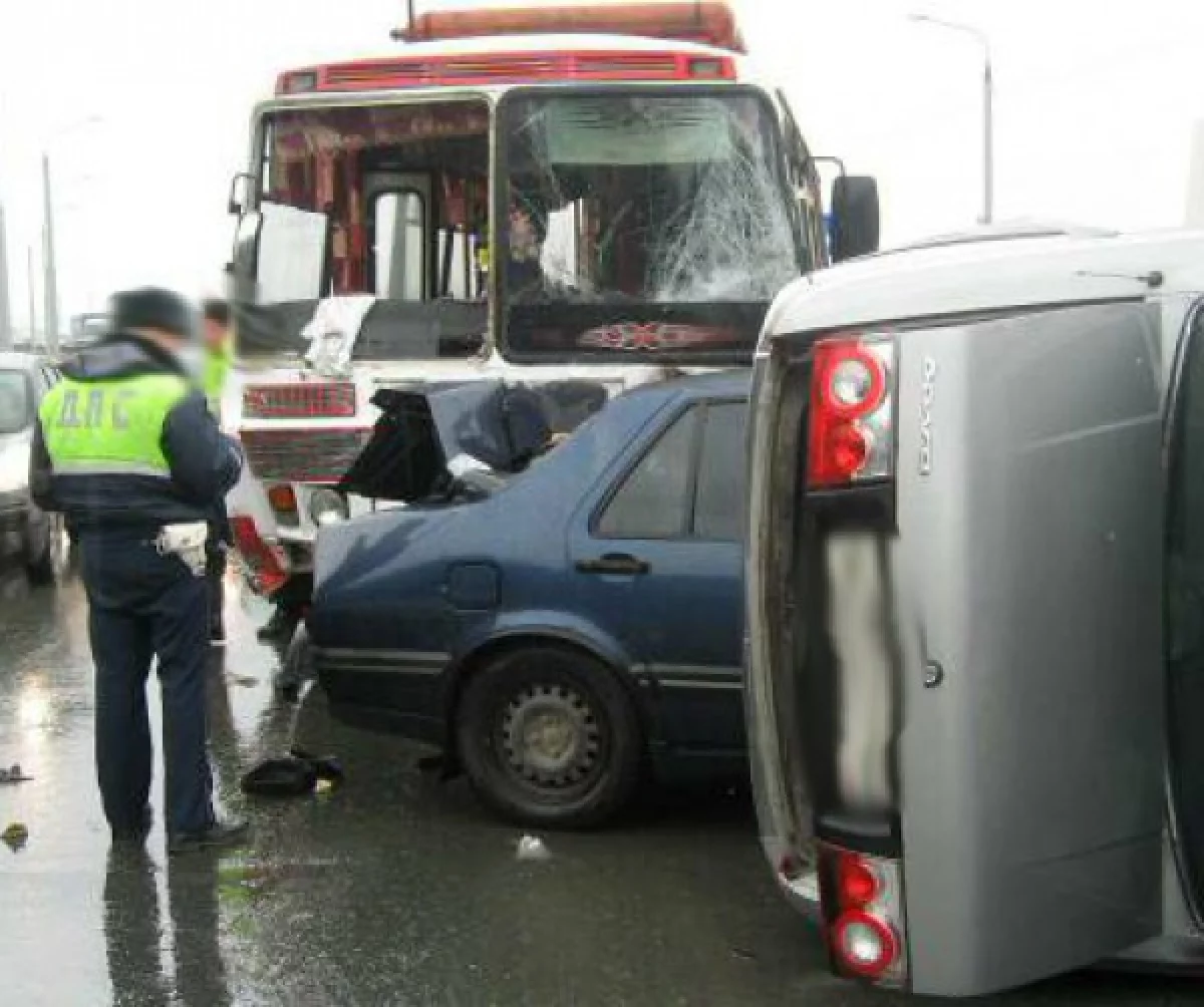 Днем во вторник, 8 апреля, на выезде с дамбы Яченского водохранилища в Калуге столкнулись два пассажирских автобуса «ПАЗ» и три легковушки: «Шевроле Нива», «Волга» и «Сааб».