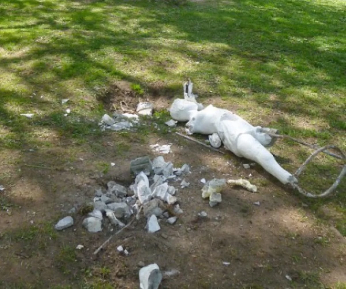 - Некие питекантропы расправились со скульптурой «Мальчик с телефоном», - написал он. - Скорее всего, это произошло в ночь на 2-е или на 3-е число. Данные снимки я сделал в 13:30 дня 3 мая. Чтобы так изуродовать гипсовую скульптуру, нужно было весьма серьёзно «постараться». Визуальный осмотр подсказывает мне, что фигурку крушили долго и целенаправленно. Увы, отморозки в очередной раз испортили настроение.