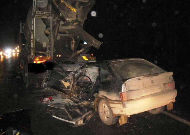 Вечером в воскресенье, 9 ноября, на подъездной дороге от трассы М3 «Украина» к Калуге ВАЗ 21144 «догнал» грузовой «Вольво».