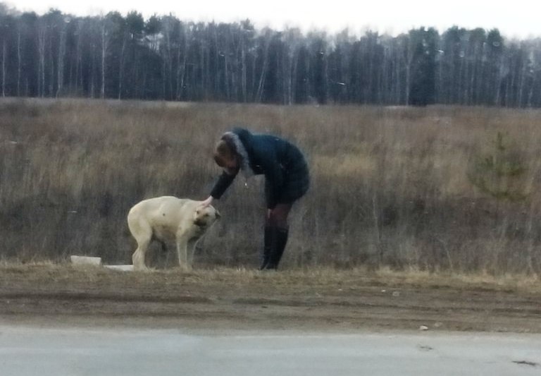 В субботу, 21 марта, на обочине дороги в строну Ждамирово в Калуге автомобилисты заметили собаку.