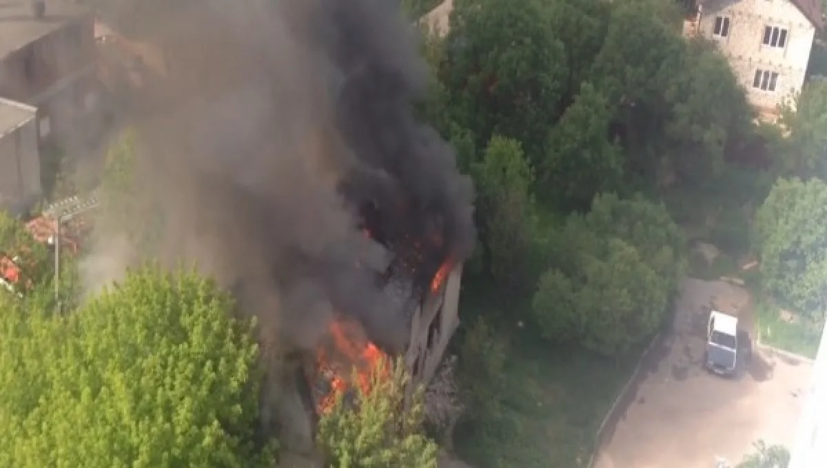 Огонь практически полностью уничтожил здание. На месте работали четыре пожарных расчета.