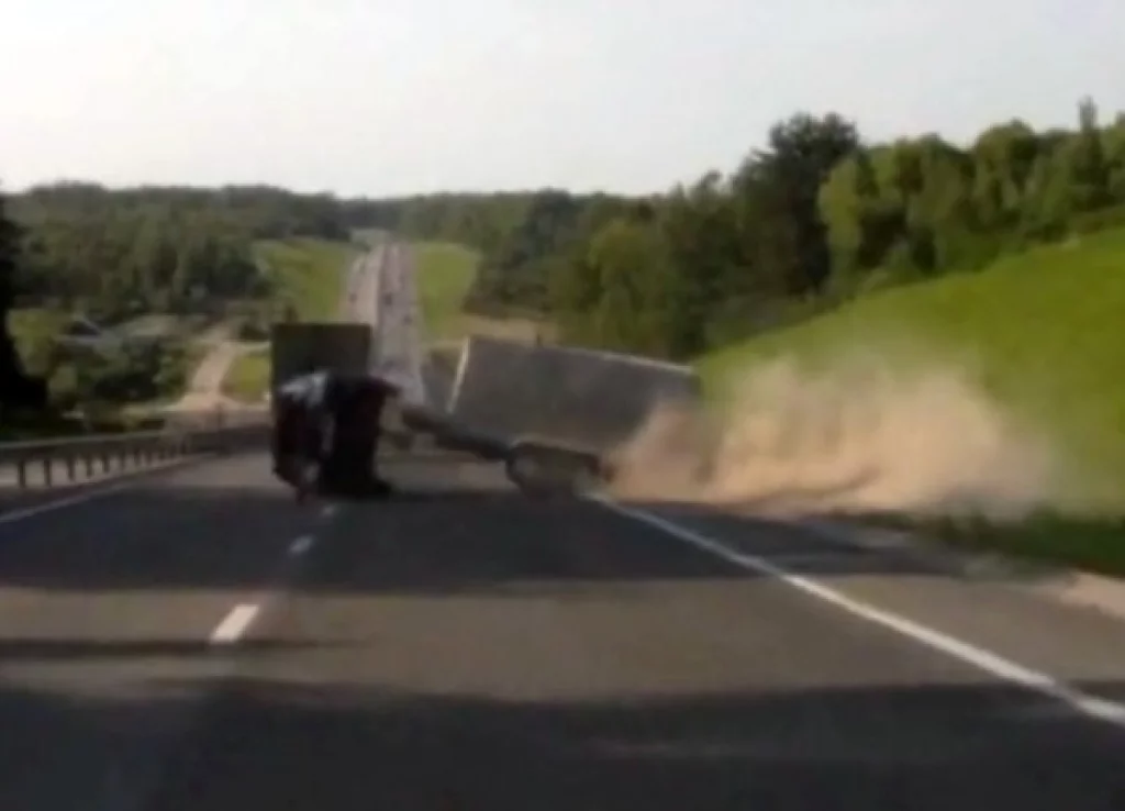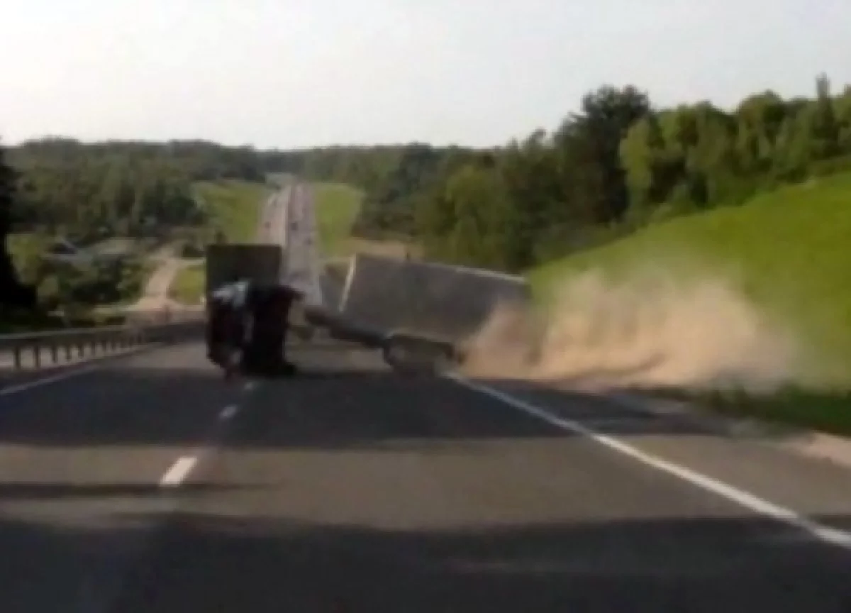 Авария произошла на спуске. Возможно, водитель начал тормозить, но загруженный прицеп не позволил удержать машину на дороге.