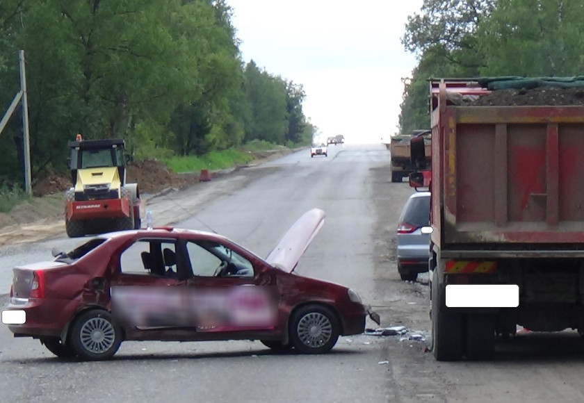 Водитель катка «Динапак» выезжал с обочины и не пропустил «Рено Логан». Ударом легковушку отбросило на самосвал «Вольво», сообщает дорожная полиция.