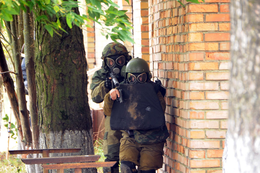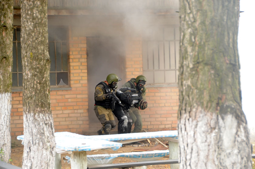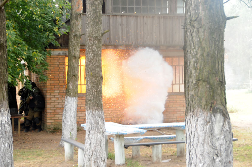 В ходе учений отрабатывались навыки уничтожения террористов и освобождения заложников. Представляем небольшой фоторепортаж с этого события.