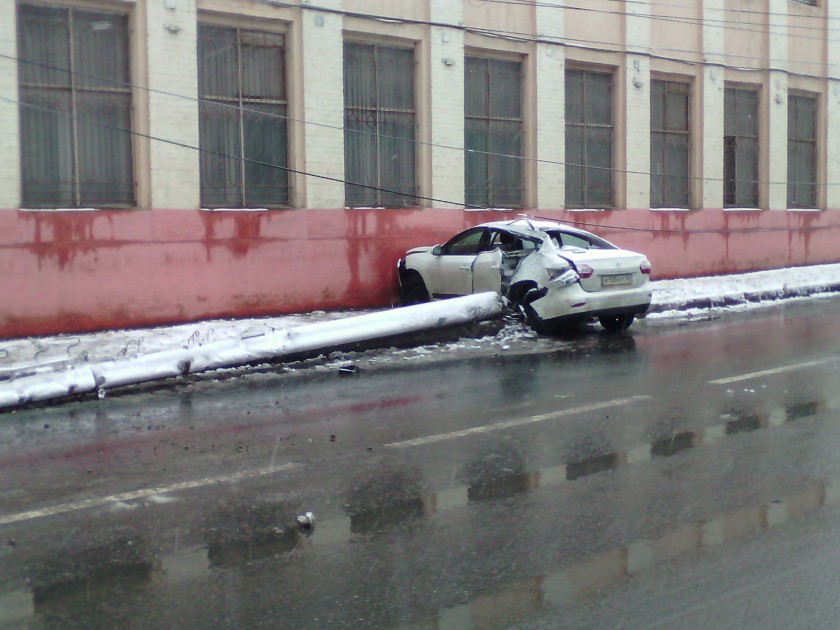 На улице Салтыкова-Щедрина легковушка снесла столб и остановилась лишь после того, как ударилась об стену. Фото в социальной сети «ВКонтакте» выложил Александр Каркунов. Очевидцы сообщают, что автомобилист, скорее всего, был пьян.