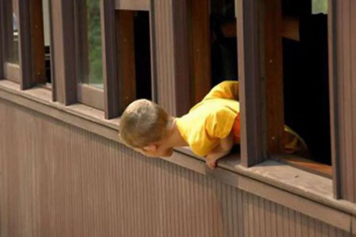 Дедушка задержался на работе. Ребенок, одевшись, ждал его в квартире. Через некоторое время малыш решил посмотреть с балкона, где же все-таки дедушка.