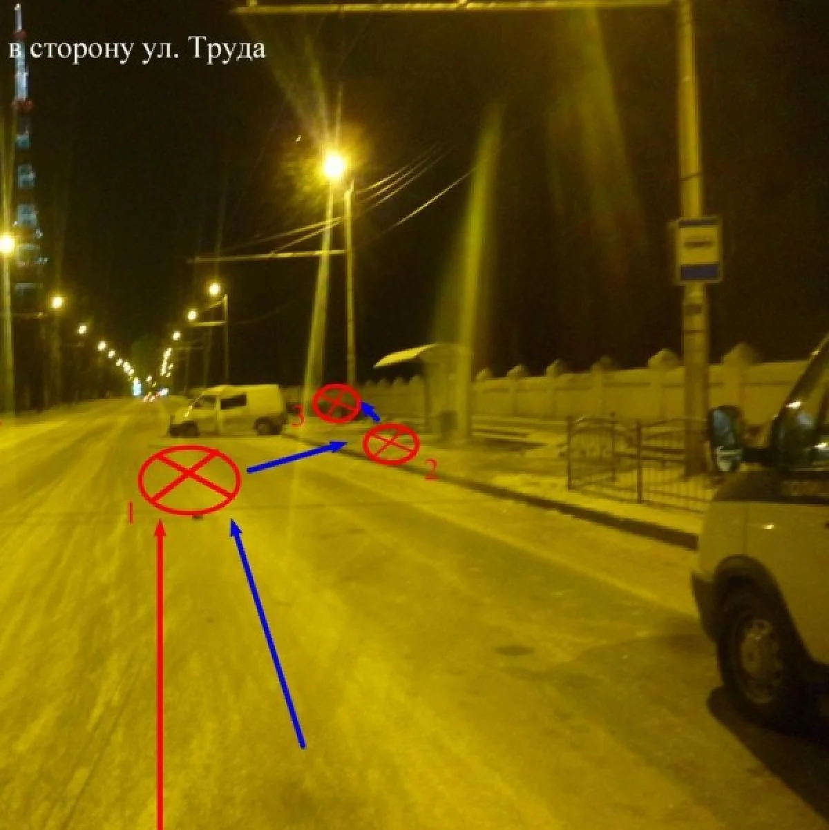 Около 3:15 1 января на перекрестке улиц Телевизионной и Карла Либкнехта столкнулись ВАЗ 2106 и «Фольксваген Транспортёр». По предварительной информации областного управления ГИБДД, водитель «Жигулей» тёмно-зеленого цвета ехал по Телевизионной со стороны Пухова и при перестроении врезался в попутный микроавтобус. От удара «Фольксваген» выбросило на остановку общественного транспорта, и машина врезалась в столб. Водитель ВАЗа скрылся с места аварии.