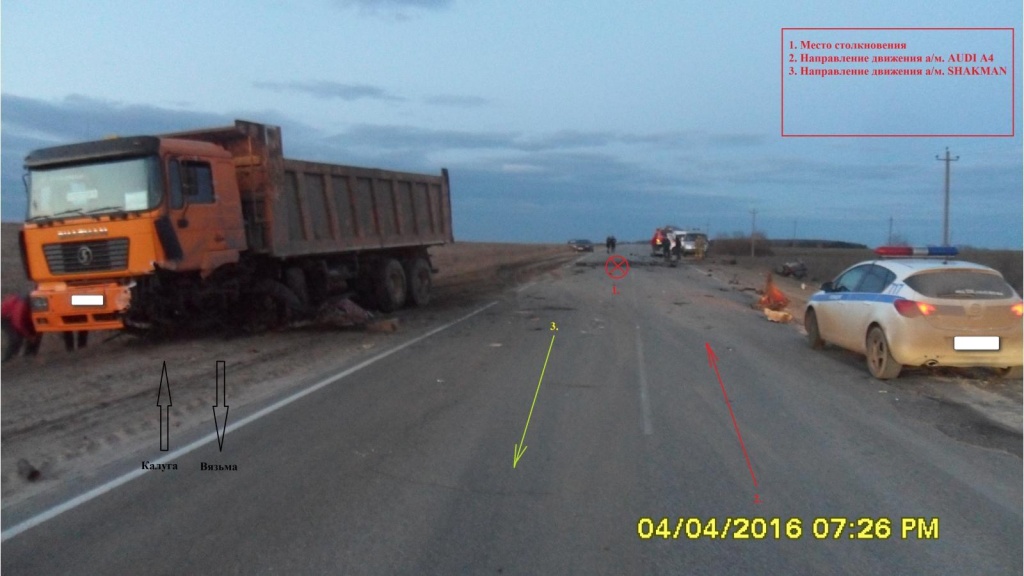 Вечером в понедельник, 4 апреля, на дороге Вязьма – Калуга в районе деревни Чёрная Грязь в аварии погиб водитель «Ауди А4».
