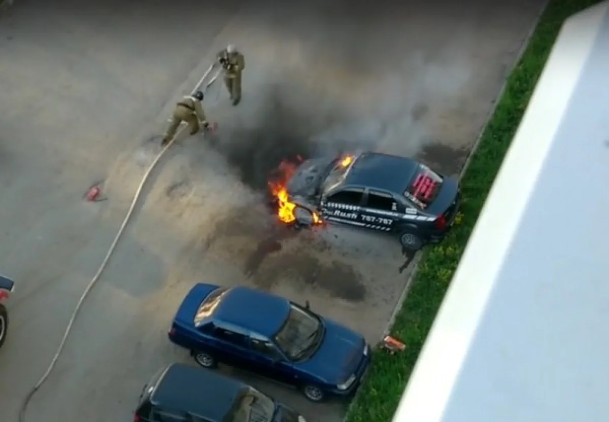 В четверг, 12 мая, около 18:30 на улице Сиреневый бульвар в Калуге загорелся припаркованный Renault Logan одной из служб такси. Происшествие засняли на видео.