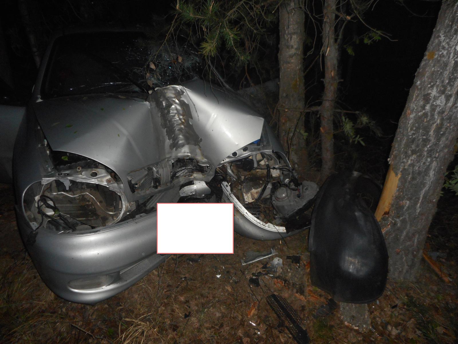 Водитель переломал ноги, протаранив дерево