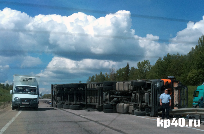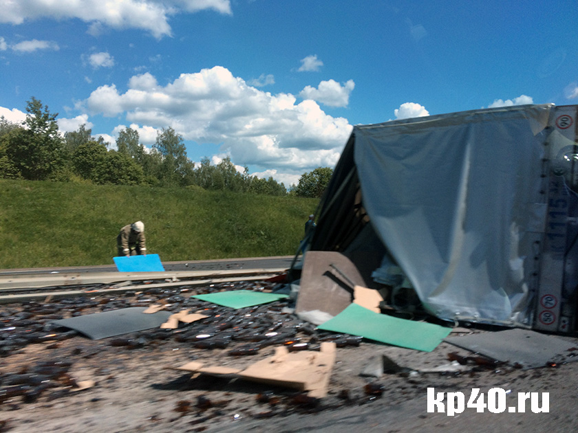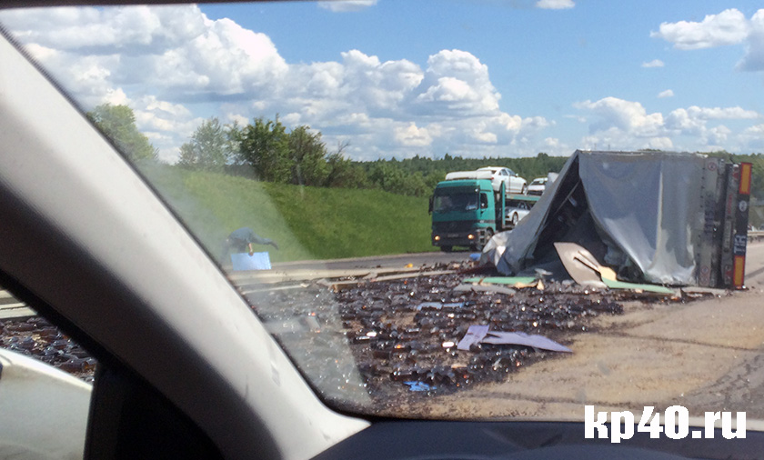 Днём в четверг, 26 мая, на окружной дороге в Калуге произошла авария с участием фуры, перевозившей пустые бутылки.