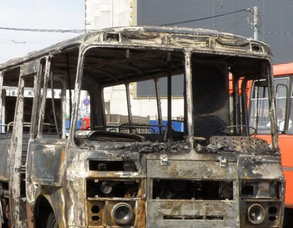 Предположительная причина пожара – поджог. Рядом с ПАЗиком обнаружена бутылка с зажигательной смесью.