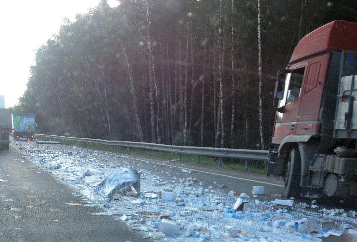 Во вторник, 21 июня, в 4:30 на 119 км трассы М-3 «Украина» столкнулись автомобили Iveco и «ГАЗ Некст». В результате на дорогу выпали коробки с йогуртом и растеклись по трассе.