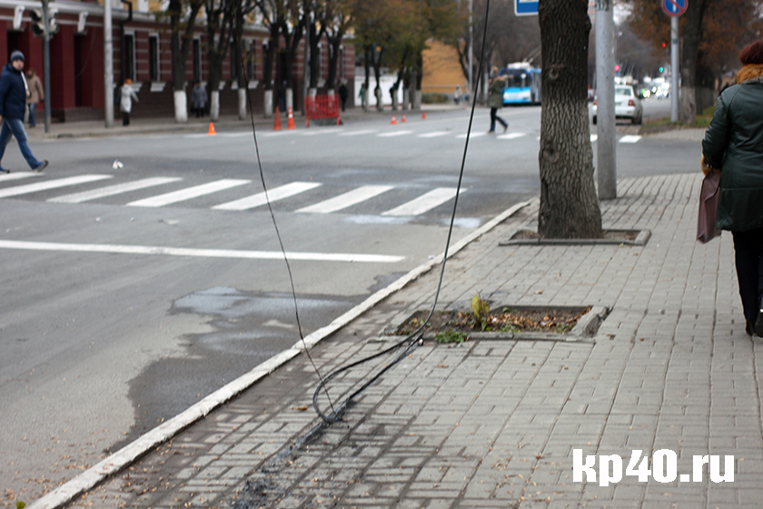 Как мы уже писали, на улице Ленина в Калуге после обрыва контактной линии троллейбуса загорелись провода над дорогой. По сообщениям очевидцев, их зацепил кран-погрузчик.