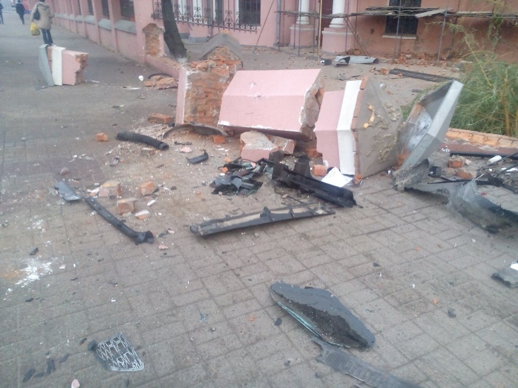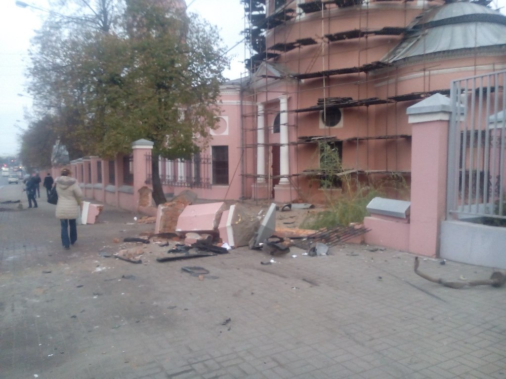 Жуткая авария на улице Кирова: «Рендж Ровер» снёс ограду церкви