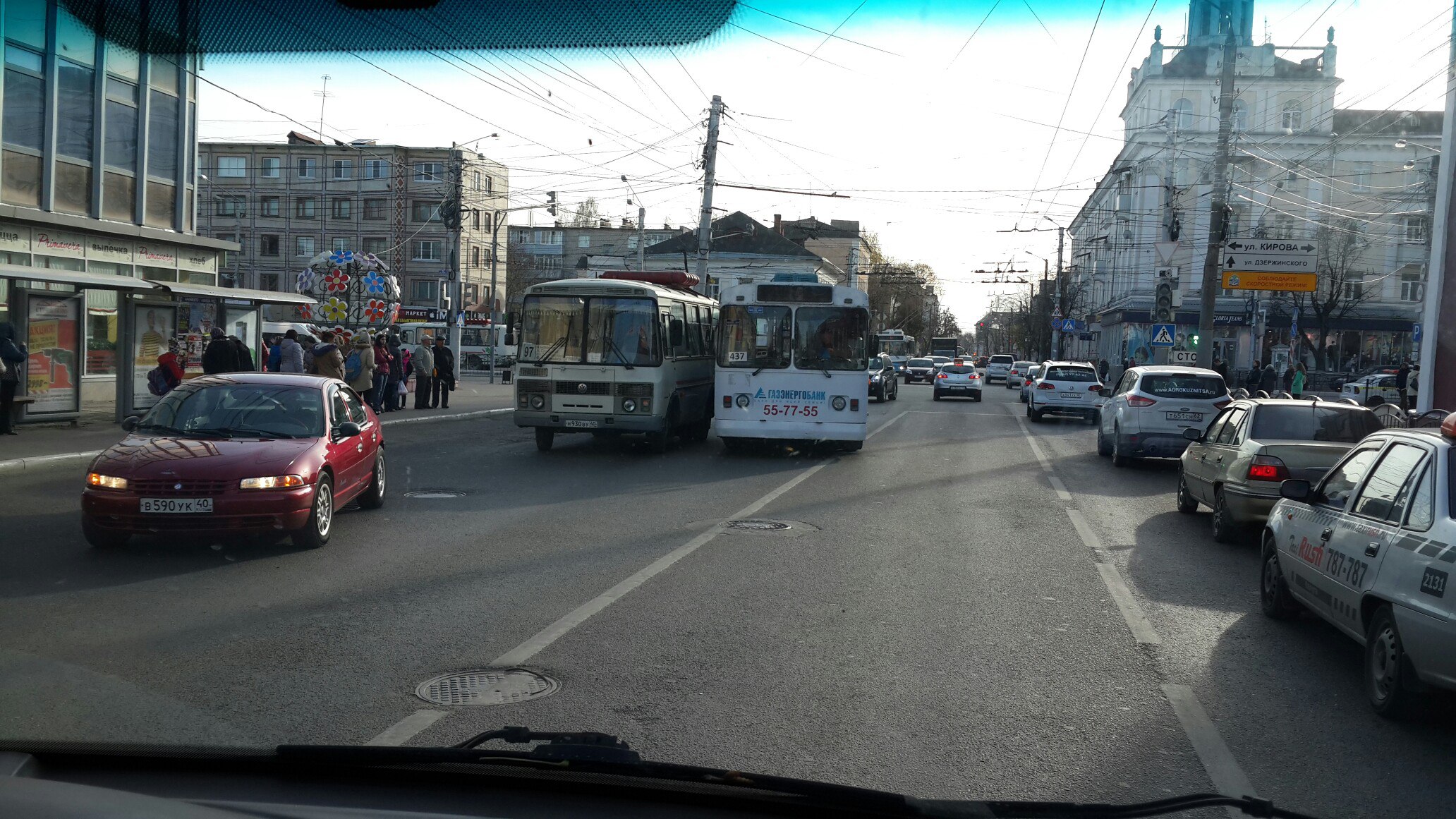 Днём во вторник, 25 октября, на улице Московской в Калуге в районе перекрестка с улицей Кирова произошла авария с участием рейсового «Пазика» 97 маршрута и троллейбуса.
