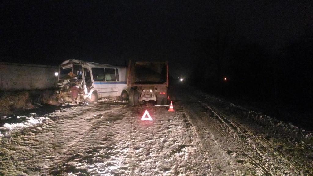 КамАЗ протаранил автобус на Киевской трассе