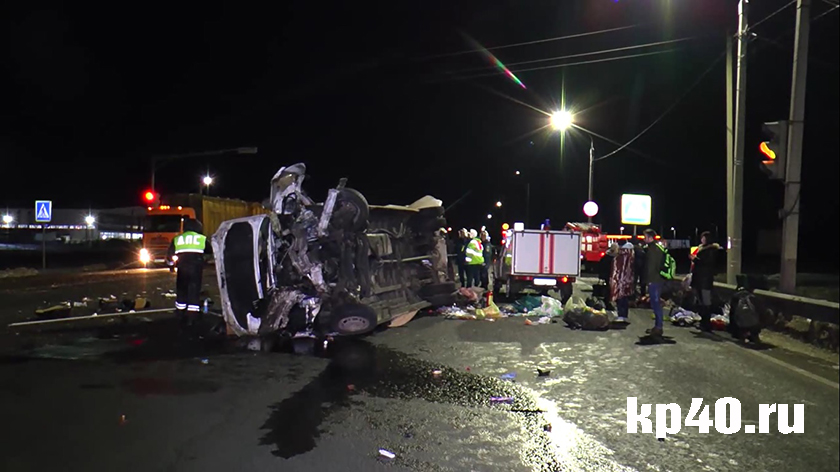 По предварительным данным, микроавтобус «Мерседес», ехавший по маршруту Москва – Гомель, остановился на красный сигнал светофора. В этот момент в него на высокой скорости влетела фура «Вольво», также двигавшаяся в сторону Калуги. От удара маршрутку выбросило на встречную полосу, где он столкнулся с «Хёндаем» и опрокинулся на бок.