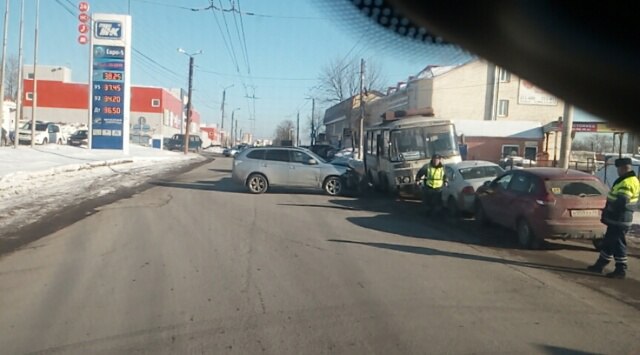 Рейсовый «Пазик» столкнулся с тремя машинами на Грабцевском шоссе