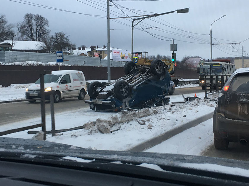 Около 6:50 во вторник, 14 февраля, «Нива» перевернулась на шоссе «Калуга - Тула» в районе светофора на въезде на Гагаринский мост.