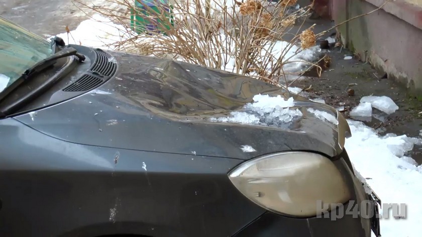 - Передний капот у машины раздавлен, - рассказывает владелица автомобиля, жительница этого дома Ирина ДЕМЕНТЬЕВА. - Сильная вмятина. И там внизу, у фары вылетело - выбило, видимо, куском льда.