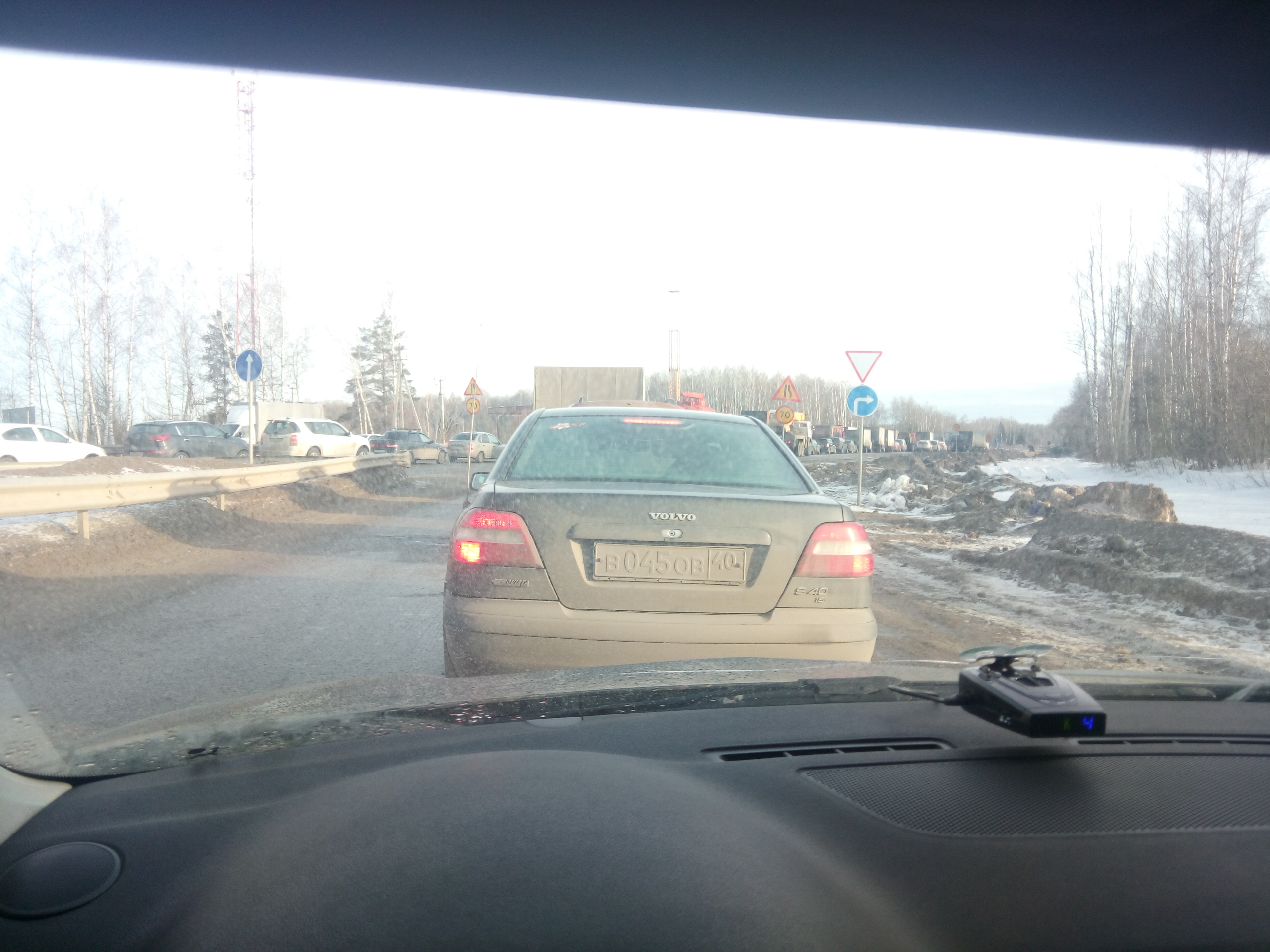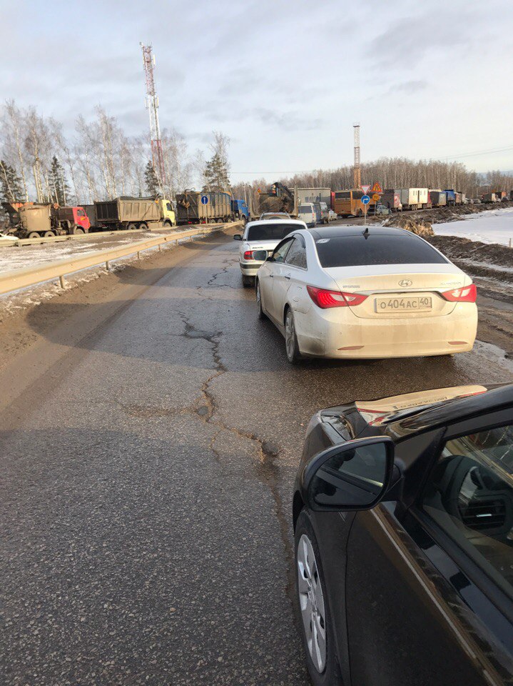 Утром во вторник, 28 февраля, на Окружной дороге в Калуге в районе выезда со стороны микрорайона Северный из-за небольшой аварии образовалась пробка.