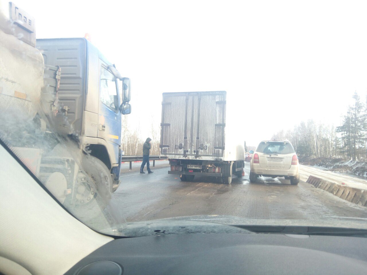Остановившиеся на проезжей части авто перекрыли путь большегрузам.