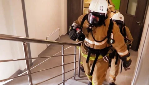 Спасатели огнетушителем ликвидировали очаг пожара и поднялись на пятый этаж для поиска людей.