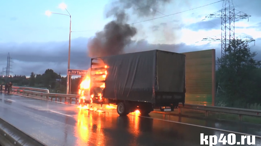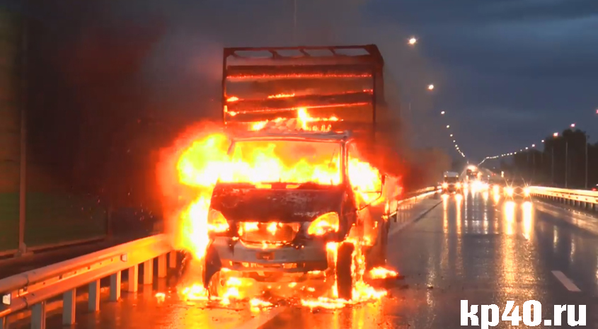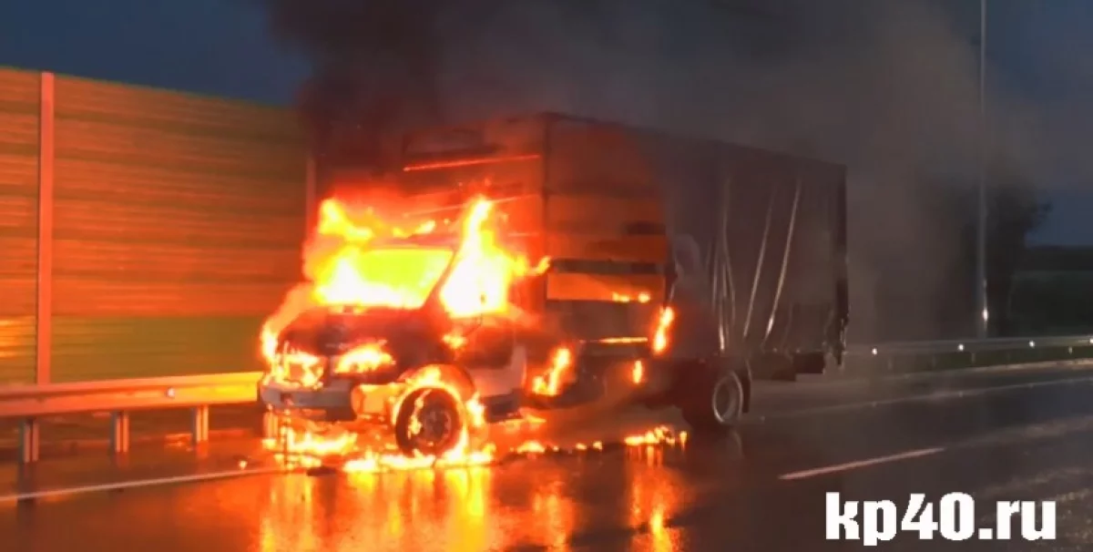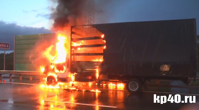 Вечером в пятницу, 14 июля, на трассе М3 «Украина» недалеко от Детчино сгорел грузовик «Валдай».