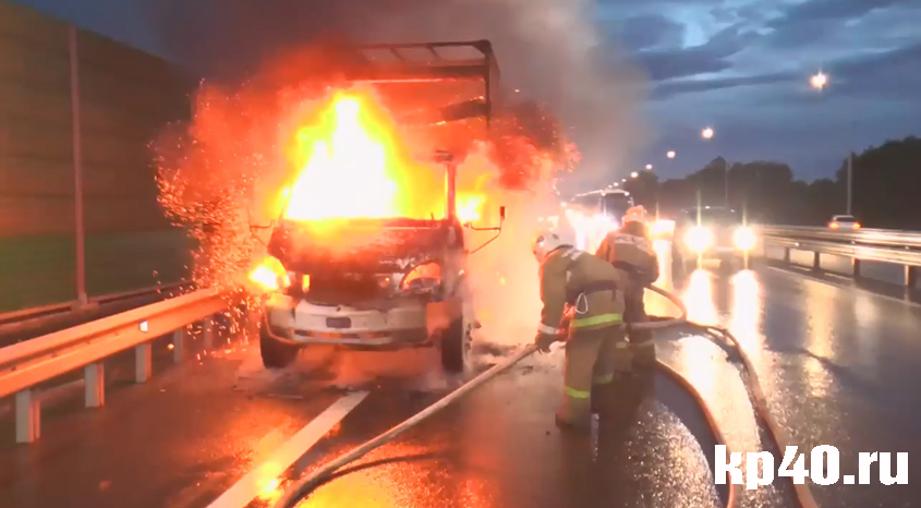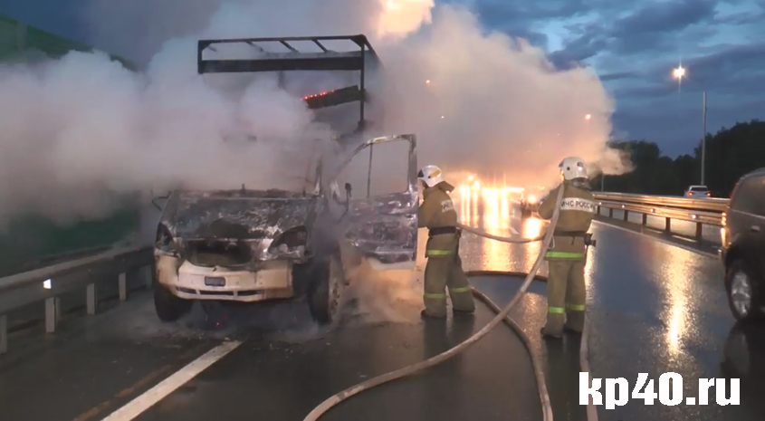 Водитель автомобиля 2008 года выпуска ехал в сторону Калуги. Неожиданно из мотора, который в этом автомобиле расположен под полом кабины, повалил дым. Водитель остановил машину. Он сам и пришедшие ему на помощь автомобилисты попытались потушить возгорание, но огонь распространился очень быстро. Когда приехали пожарные из Детчино, автомобиль уже догорал. Машина была в собственности водителя. К сожалению, восстановить её уже невозможно.