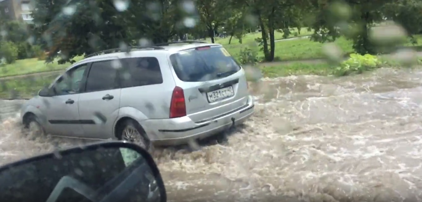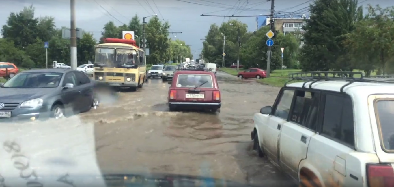 Днём в пятницу, 21 июля, после ливня в Калуге затопило несколько улиц. Огромные лужи образовались, в частности, на проезжей части улиц Моторной, Грабцевского шоссе.