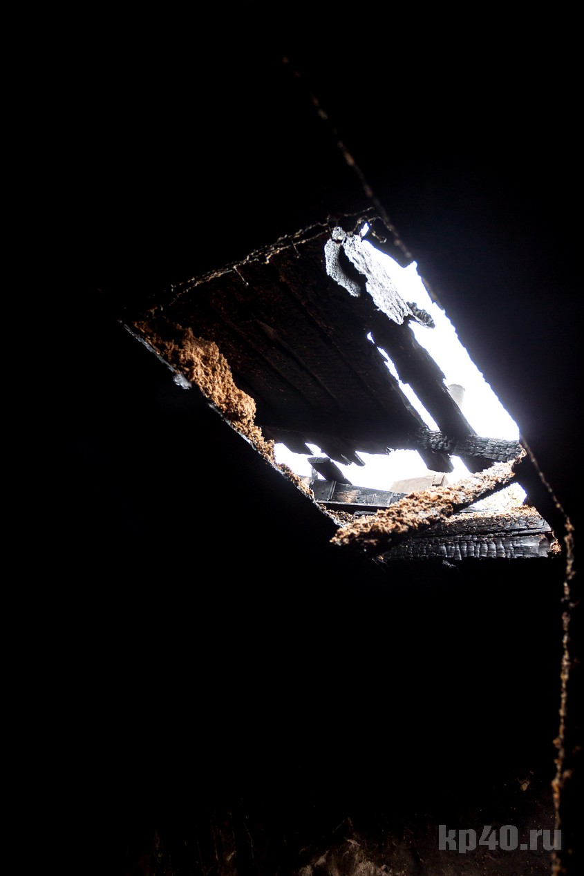 Обгоревшая кровля, выбитые окна и выломанные деревянные балки. Второй этаж закопчён, от террасы осталось только воспоминание.