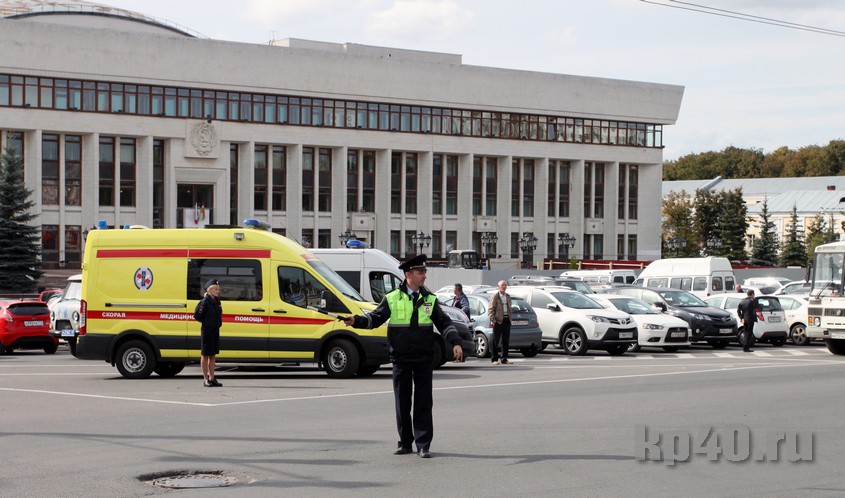 На площади Театральной дежурила карета «Скорой помощи», хотя сообщений о минировании драмтеатра не поступало.
