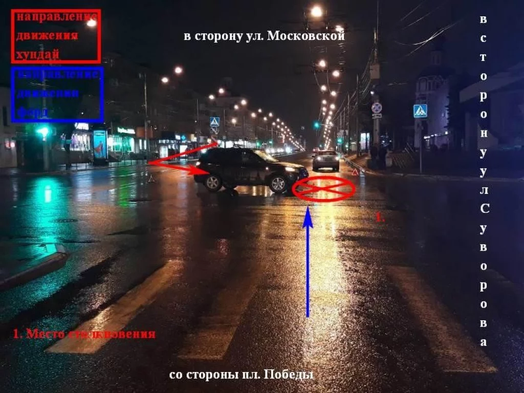 Вечером в воскресенье, 19 ноября, на перекрёстке улиц Кирова и Ленина столкнулись Hyundai Santa Fe и Ford Focus.