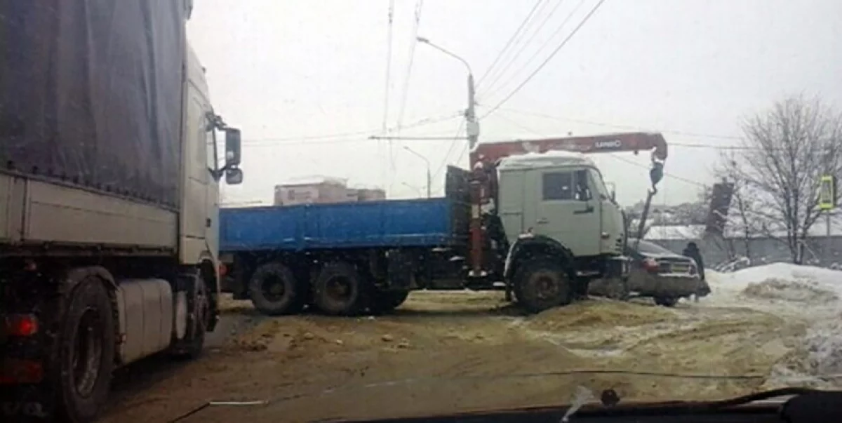 В четверг, 8 февраля, около 13:00 на Тульском шоссе недалеко от Гагаринского моста столкнулись КамАЗ и маршрутка, двигавшиеся в сторону центра.