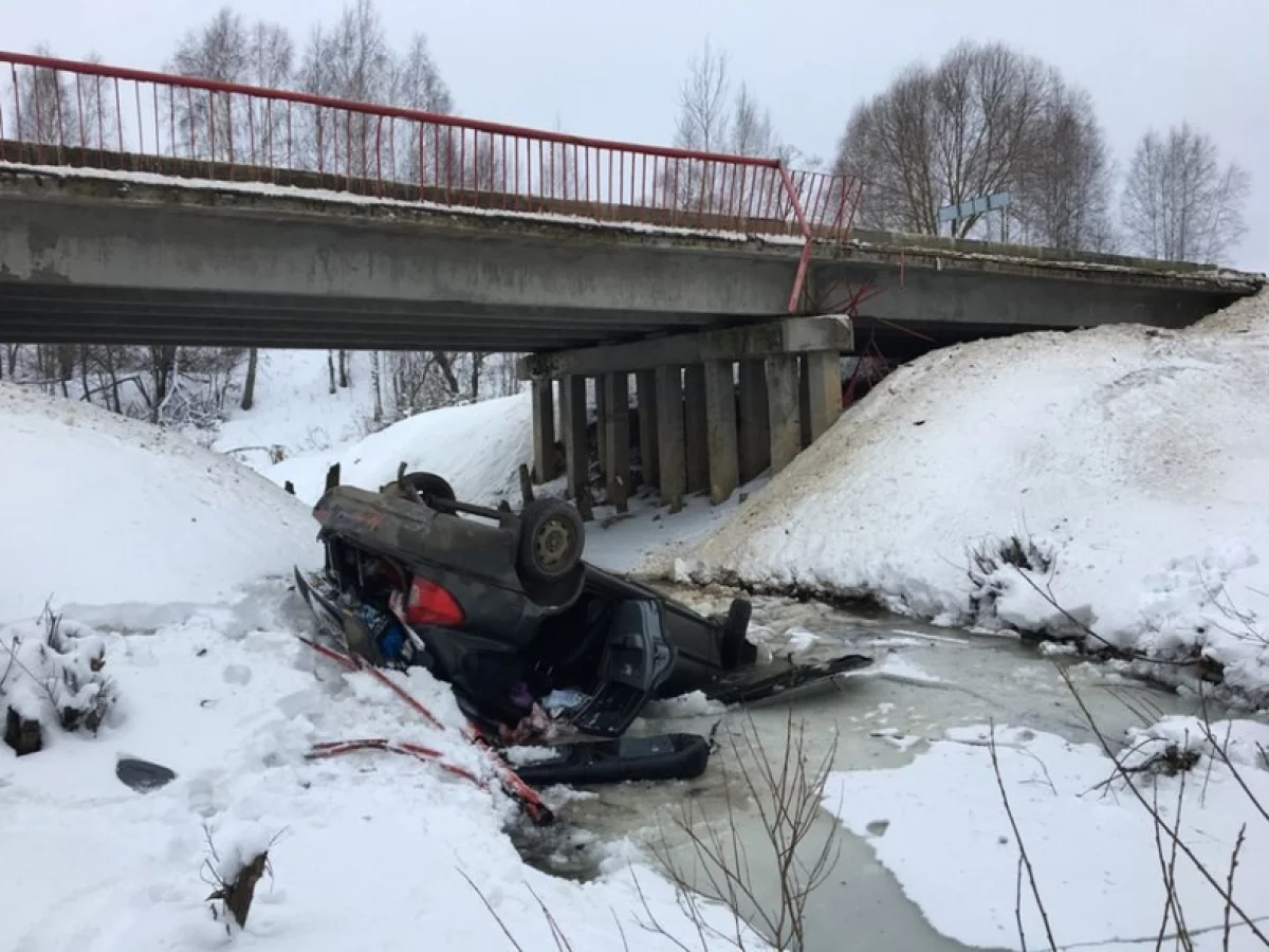 Легковушка упала с моста в реку