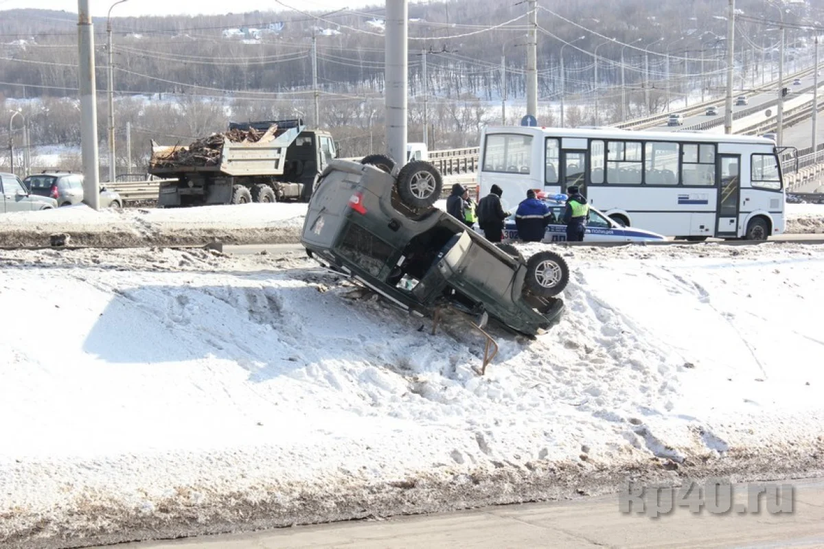Днём в понедельник, 19 марта, на улице Гагарина в Калуге перевернулся автомобиль «УАЗ Патриот».