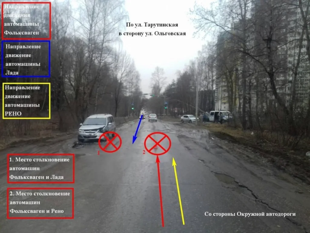 По предварительным данным ГИБДД, 30-летний водитель «Фольксвагена Пассат» двигался по Тарутинской в сторону улицы Ольговской, выехал на встречную полосу и врезался в «Ладу Ларгус». После этого «Фольксваген» отбросило на «Рено Логан».