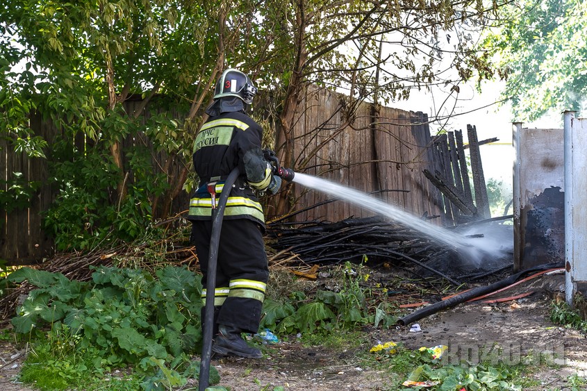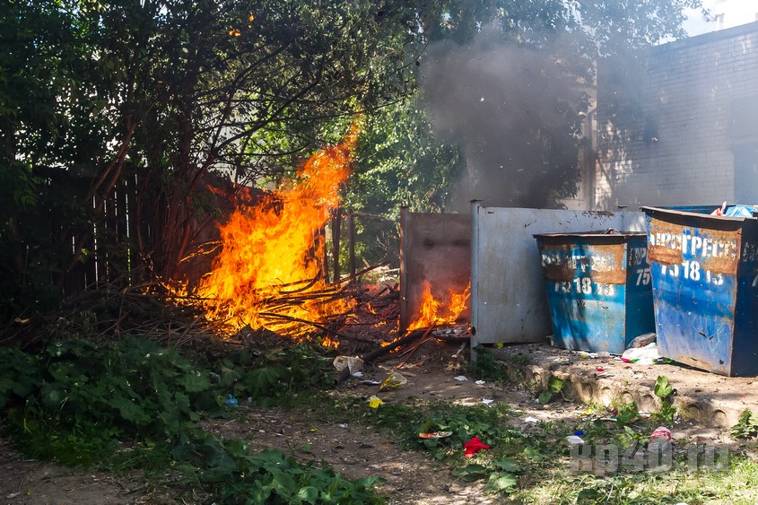 Днём в понедельник, 4 июня, за частным домом на улице Баумана, 48б загорелся мусор рядом с контейнером. Огонь быстро перекинулся на деревянный забор.