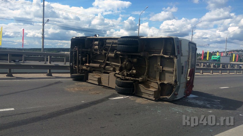 Около 14 часов в четверг, 7 июня, на Гагаринском мосту в Калуге перевернулся маршрутный «Пазик».