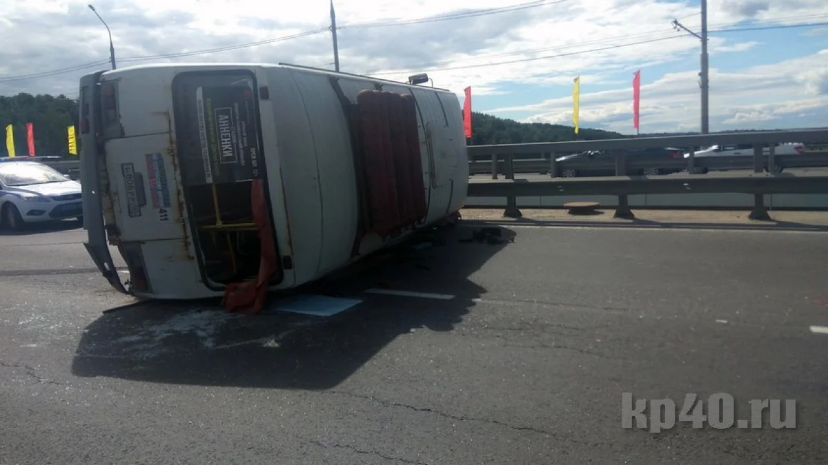Около 14 часов в четверг, 7 июня, на Гагаринском мосту в Калуге перевернулся маршрутный «Пазик».