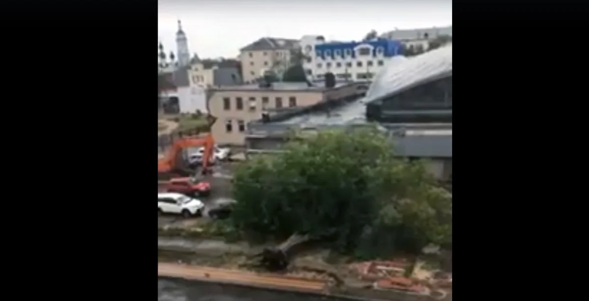 Вечером в пятницу, 8 июня, на улице Марата в Калуге рядом с куполом бывшего рынка упало дерево.