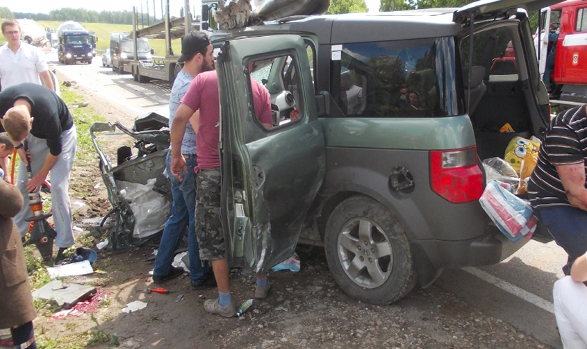 Очевидцы сообщают, что водитель большегруза уходил от столкновения с легковушкой.