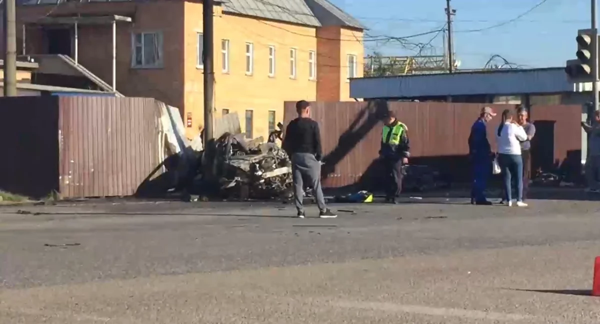 Как сообщают очевидцы происшествия, автомобиль после столкновения отлетел в столб и загорелся. Осколки разметало по трассе.